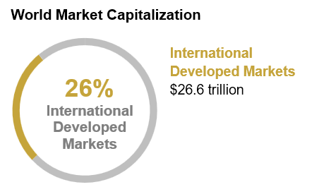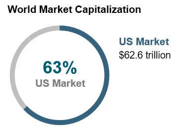 Market segment (index representation) as follows: Large Cap (MSCI World ex USA Index), Small Cap (MSCI World ex USA Small Cap Index), Value (MSCI World ex USA Value Index), and Growth (MSCI World ex USA Growth Index). All index returns are net of withholding tax on dividends. World Market Cap represented by Russell 3000 Index, MSCI World ex USA IMI Index, and MSCI Emerging Markets IMI Index. MSCI World ex USA IMI Index is used as the proxy for the International Developed market. MSCI data © MSCI 2026, all rights reserved. Frank Russell Company is the source and owner of the trademarks, service marks, and copyrights related to the Russell Indexes.