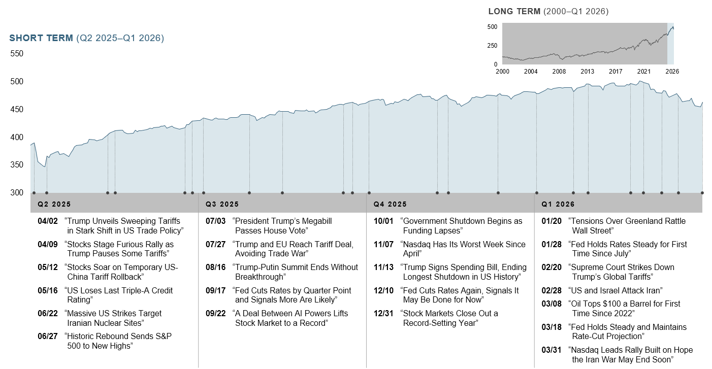 These headlines are not offered to explain market returns. Instead, they serve as a reminder that investors should view daily events from a long-term perspective and avoid making investment decisions based solely on the news.