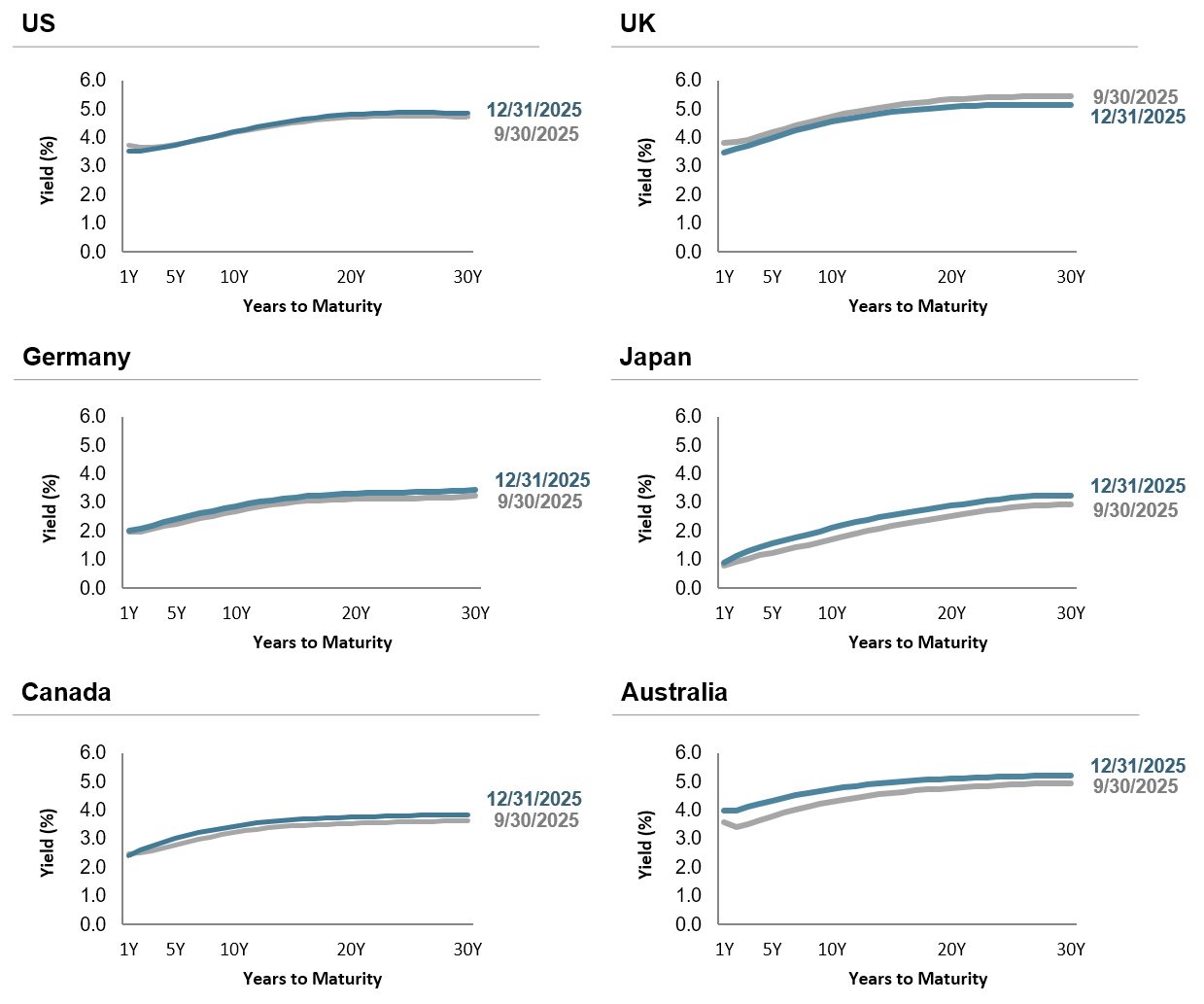 - Except for the UK and US, interest rates generally increased across global developed markets for the quarter.