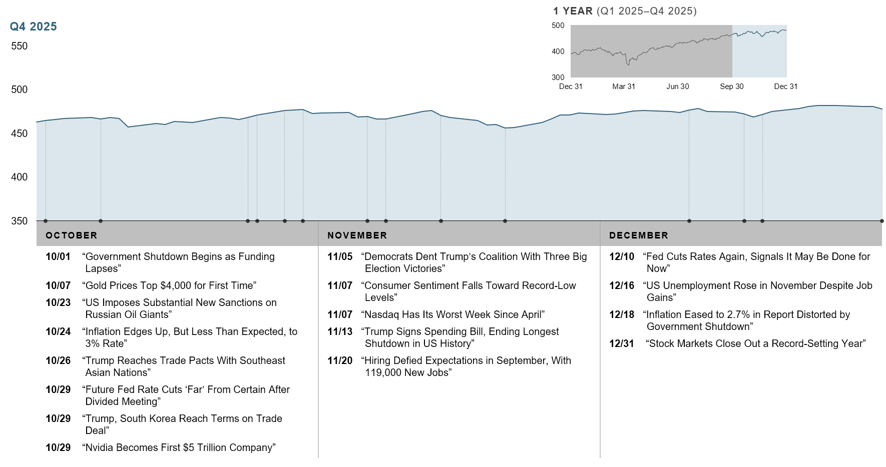 These headlines are not offered to explain market returns. Instead, they serve as a reminder that investors should view daily events from a long-term perspective and avoid making investment decisions based solely on the news.